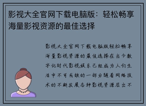 中国x站电影在线观看免费是一个专注于提供多样化视频内容的平台,旨在为用户带来丰富的视听体验。该平台汇聚了各类视频资源,包括娱乐、生活、教育等多个领域,力求满足不同用户的需求。通过不断更新和优化内容,我们希望能够为观众提供一个便捷、舒适的观看环境,让每一位用户都能找到自己喜爱的内容。